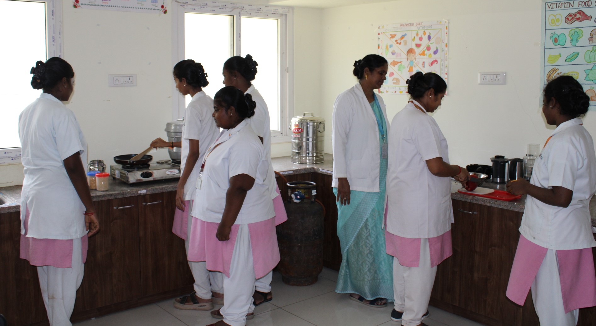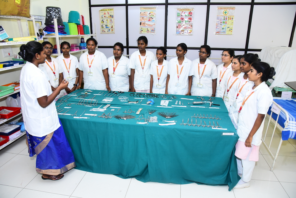 Nursing foundation lab is equipped with 12 beds including all sophisticated equipment’s and advanced manikins, simulators and interactive models like CPR manikins, Medical & Surgical instruments, Human Torso Manikin for gaining skills. The students gain experience and confidence by handling and performing procedure on manikins. Also the lab is equipped with high simulated manikins to practice advanced nursing procedures which are otherwise performed in the critical care units like BLS and resuscitation care in an ideal set up to give hands on practical skills to students.